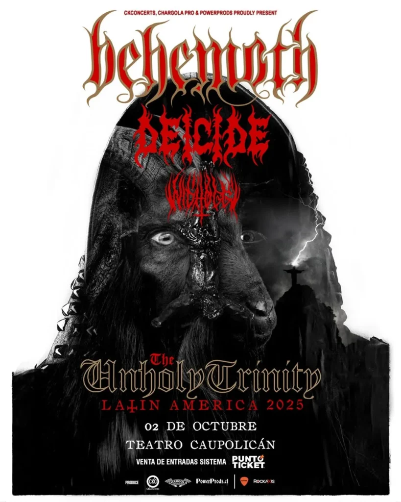 Darknoise Magazine > Blog > Reseñas > Tres décadas de blasfemia y death metal estaran este 2 de octubre en Chile con su gira:»The Unholy Trinity Latin America Tour 2025»junto a Behemoth y Nidhogg.